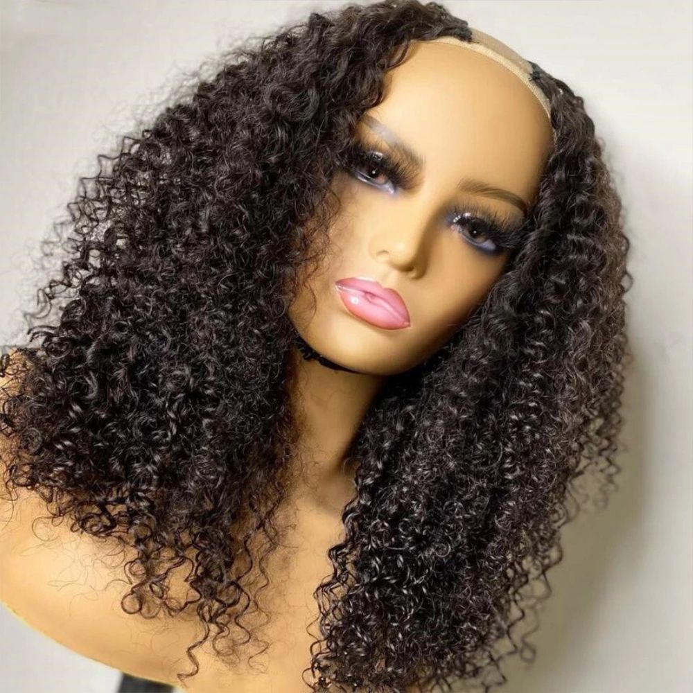 Kiqibeauty Afro Kinky Curly V Part Wig Human Hair Minimal Leave Out 200 Density Upgrade U Part Human Hair Wigs For Black Women V Shape Clip In Human Hair 3c 4a Thin Part